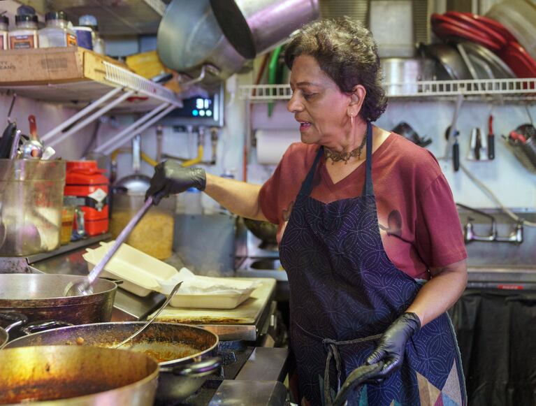 Bake on the Run is the only Guyanese eatery on the West Coast from Chile to Alaska. Guyana is a small little country right above Brazil, right to the east of Venezuela. It’s a little smaller than Oregon in size, just under 800,000 people. It’s part Indian, African, Chinese, Portuguese, and Amerindian – like nine tribes within the border. So all the food intermingles. That’s why we have chow mein on the menu. That’s why we have bacalhau, which is a Portuguese-style salted cod which we call salfish. That’s why we have bake— indigenous fry bread—and all the curries.