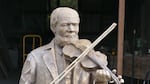 “This is probably the most complex piece I’ve ever done. The reason is he’s playing a fiddle. It’s hard to get the hand to look natural,” Helzer explains. “I finished the hand, I looked at it, looked fine from one angle, I go to another angle. It looked like he had a broken wrist. So, cut it off, start over.”