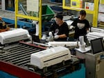 Employees working on an air conditioner production line at a Midea factory in Guangzhou, in China's southern Guangdong province, last July.