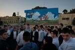 A tour group from a religious seminary visits the site of the former police station in Sderot on March 20. Hamas militants attacked and killed civilians and police officers in Sderot on Oct. 7.