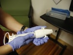 At Seven Hills Family Medicine, the staff ready the procedure room for the abortion patients. It’s the same room where mole removals, IUD placements and biopsies happen. They use the nitrous oxide, also known as laughing gas, for pain relief, and Arnold will use a hand-held SofTouch device to perform the abortions.