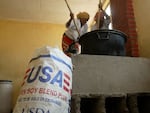 Workers prepare food at the Anderkelo primary and middle school in Ethiopia's Afar region, where a U.S.-supplied blend of corn and soy distributed by the U,N,'s World Food Programme provides a daily meal for hundreds of students in a region where food access is severely limited.