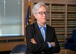 FILE - Governor Tina Kotek poses for a portrait in the State Library of Oregon, Salem, Ore., Jan. 29, 2025.