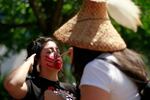 Ashleigh Coon, Diné, Early Childhood Program Co-Director for Future Generations Collaborative, waits patiently while another attendee paints a red handprint over her mouth, which visually symbolizes the silencing of missing and murdered women, as well as the lack of law enforcement and media attention to the epidemic.