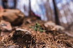 Undated photo of a seedling growing on a Mast Reforestation project site at an unspecified location.