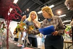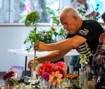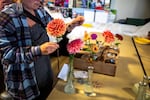 A competitor in the Oregon State Fair floral competition puts one of her dahlias in a vase to be judged in Salem, Ore., Aug. 27, 2025. For some, the Oregon State Fair competitions are a tradition that spans over multiple generations, many people having memories of attending and competing with their grandparents.