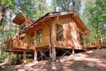 The nonprofit Friends of Tryon Creek is opening on Sep. 20, 2025 a new education pavilion to provide year-round programming, including field trips, day camps and community events at the Tryon Creek State Natural Area in Southwest Portland. This photo taken on Sep. 13, 2025 shows the front of the roughly 2,900-square-foot pavilion which is designed to resemble plankhouses used by Northwest Indigenous tribes for potlatches, ceremonies and other events.