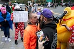 Hallmarks of the Portland protests leading up to that weekend had been the increasing numbers of inflatable costumes, particularly frogs, as well as a puppy parade and a man in a chicken suit.
