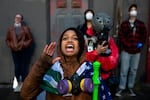 Charlie, who withheld his last name, wears a lucha libre mask and other items with indigenous and cultural significance, saying he is “bringing my Mexican and native cultures together.” Thousands gather for a “No Kings 2.0” protest and march at Pioneer Courthouse Square in Southwest Portland, Oct. 18, 2025.