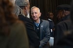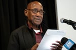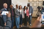 Community members, officials and affiliates of the 1803 Fund attend a press conference for the Albina neighborhood development on Tuesday, Dec. 2, in Portland, Ore.