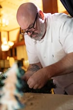 Chef David Diffendorfer puts the finishing touches on the gingerbread display at the Benson Hotel in Portland, Ore., on Monday, Dec. 1, 2025. This year marks the 54th year of the annual display at the hotel.
