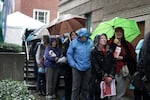 Festival goers get caught in long lines and heavy rain at Wordstock.