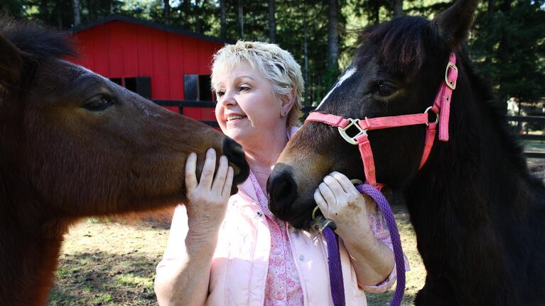 Michelle Martin with her horses. Martin is concerned her horses were sickened as a result of herbicide exposure.